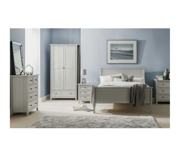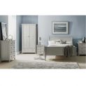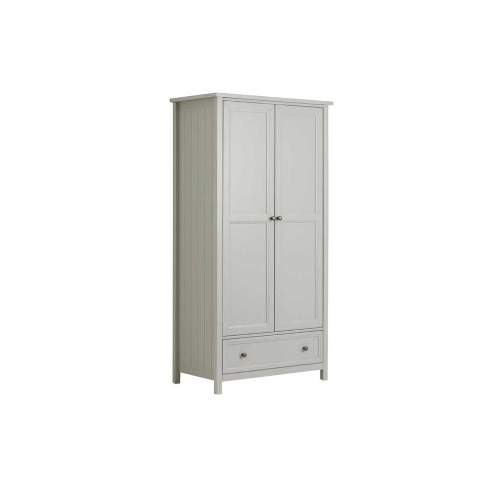 New England wardrobe is an elegant style wardrobe with two doors and one drawer. The combination of exquisite dove grey lacquered finish with characteristic side panelling and detailed chamfered cabinetry makes for a soothing and refined aesthetic with timeless appeal, while delicate pewter handles add the perfect finishing touch.