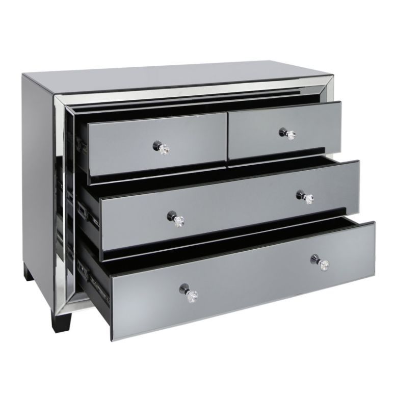Omnese Smoke Grey and Mirror 4 Drawer Cabinet