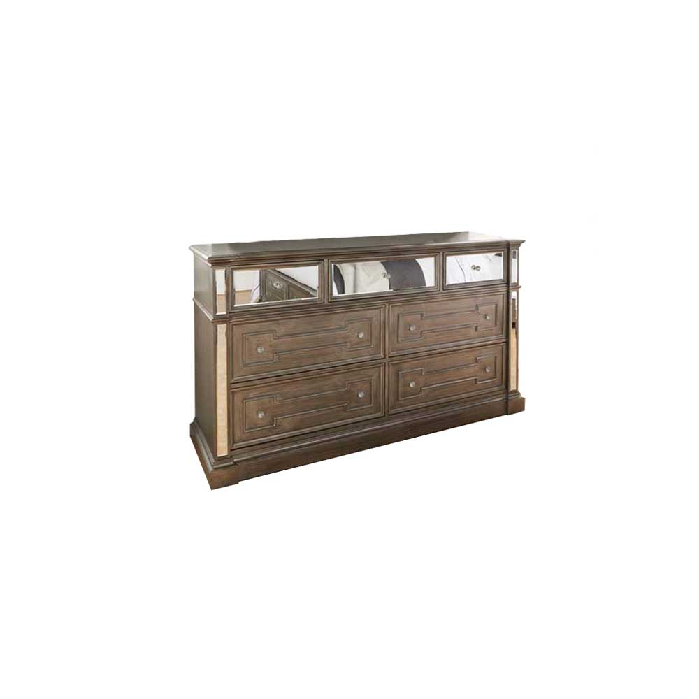 The Ophel collection has been designed for those who seek an elegant yet modern bedroom. Units feature beveled mirror panels and crystal-styled handles set against a contemporary grey coloured frame - this Hollywood regency glamour-styled range has it all. Ophel also features large drawers with detailed paneling that will work with many interiors.