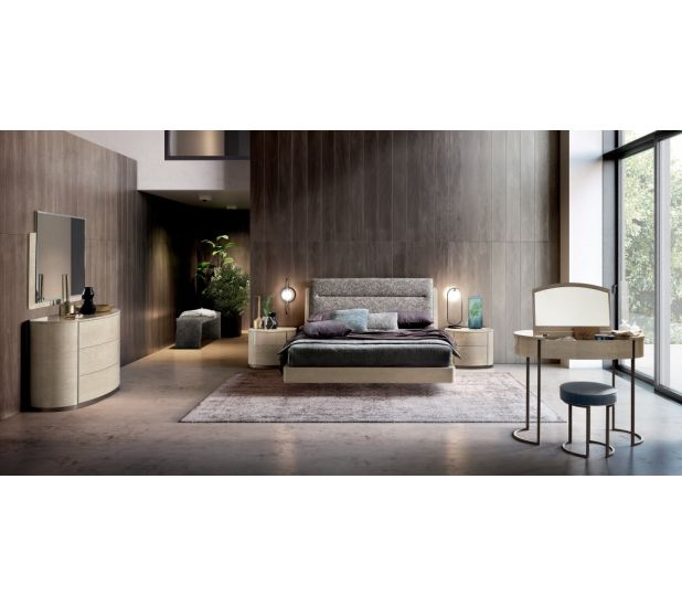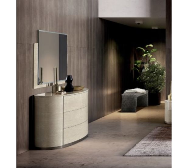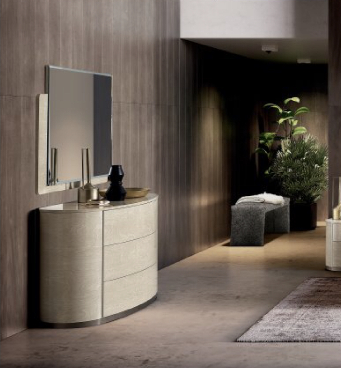 A unique and luxurious collection manufactured in Italy by Camel group. Mayfair bedroom with its contemporary shape and high gloss finish will make a statement in your room. The round night collection meets the needs of contemporary luxury homes. Soft, rounded lines are achieved utilizing sophisticated technologies eliminating corners and geometric sharp lines. Ivory and silver birch gloss finishes imbue a warm atmosphere to the bedroom.