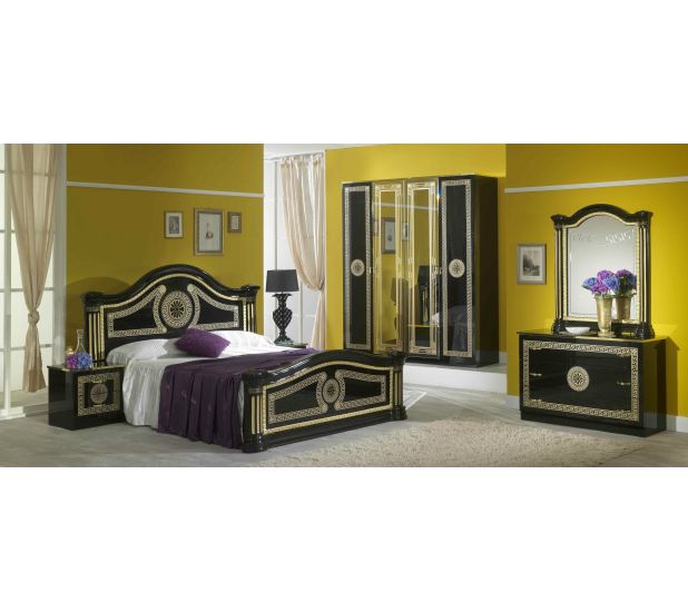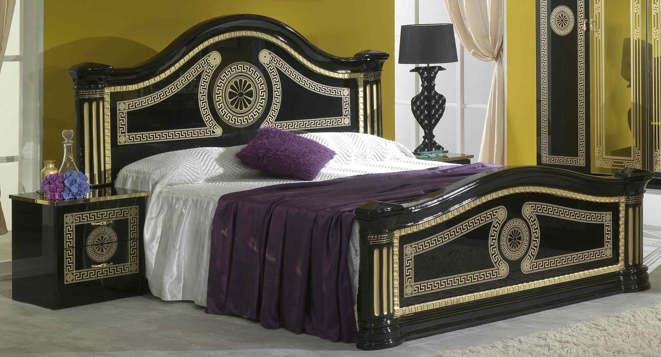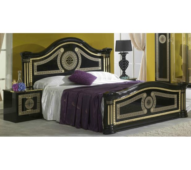 The classic Italian bed has a high gloss lacquered finish with contrast floral patterns. This stunning bed will add a royal and prestigious charm to your bedroom and you will want to purchase matching pieces.