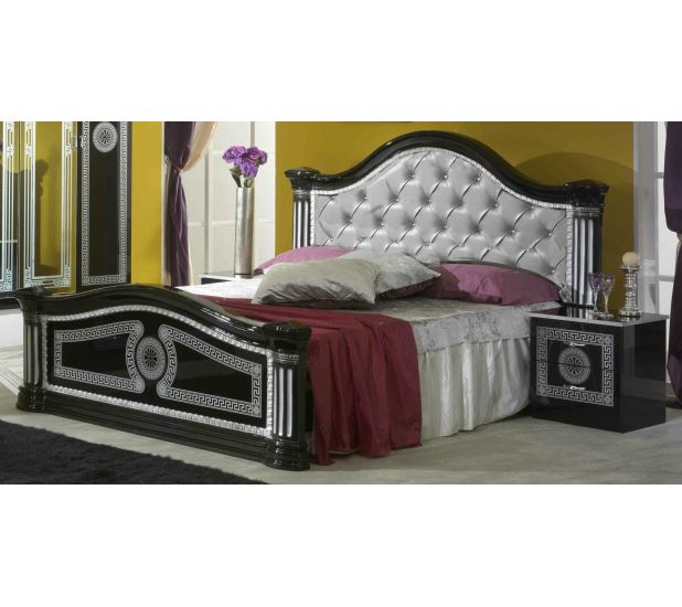 New Serena Upholstered Classical Italian Bed - Black & Silver