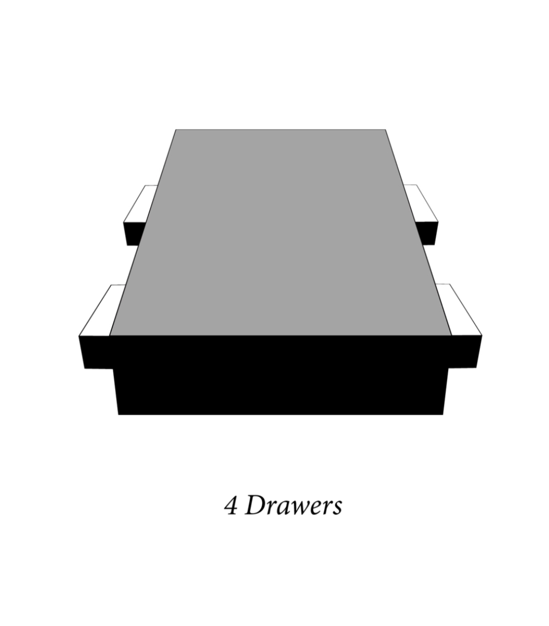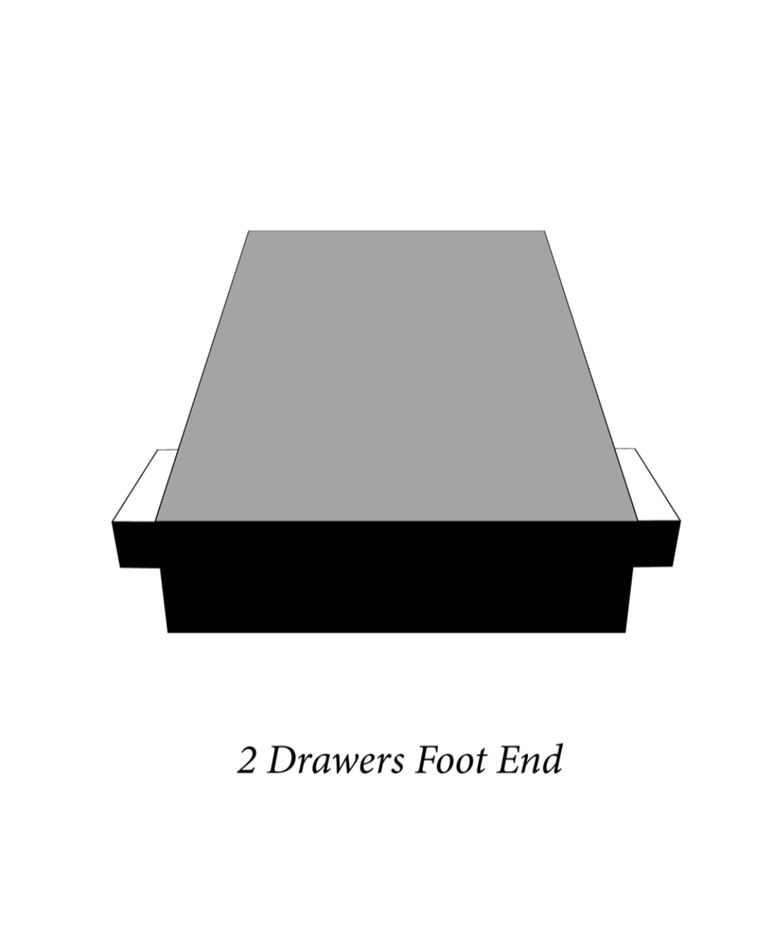 Drawers can be added to your bed for storage as 2 drawers, 4 drawers or Jumbo drawer. Please ring us to add drawers to your bed.