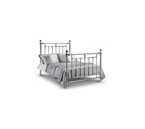The Emperor is an extremely imposing and impressive chrome bed. Its high headboard and matching footboard create a real wow factor, with the overall effect enhanced by exquisite, highly detailed finials and castings. A sprung slatted base ensures added comfort and prolonged mattress life. A stunning centrepiece for any bedroom.