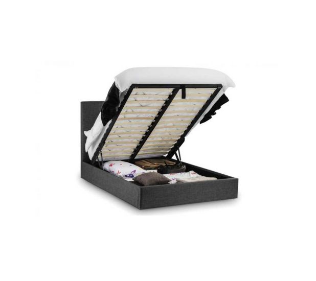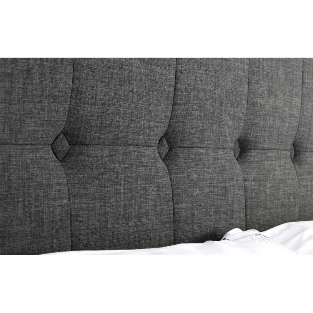 Sorello is a stunning fabric bed, beautifully upholstered in a sophisticated slate grey linen fabric. A contemporary high headboard with immaculately finished diamond shaped feature buttoning makes an impressive style statement, while a gas-powered lift-up Ottoman offers a phenomenal amount of storage space. A sprung slatted base ensures a good night's sleep and prolonged mattress life. Sorello is the perfect combination of stylish design and quality and offers fantastic value for money.