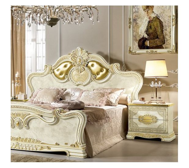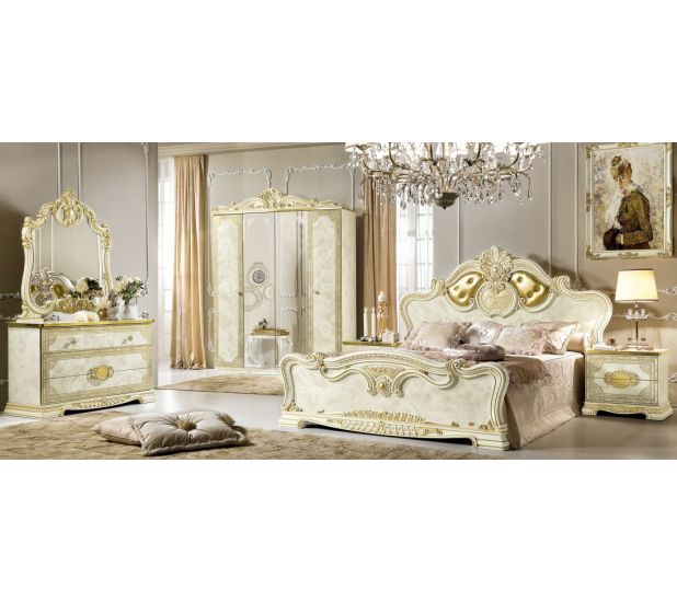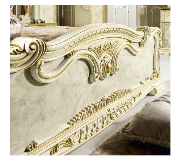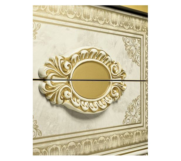 A timeless classic and luxurious collection manufactured in Italy by Camel group. Leonardo bedroom features high quality gloss finish in cream and gold shades, the baroque style and classic lines combine to create an environment that evokes the splendor of the 1600 palaces. Gold details on ivory high gloss panels and arabesque decorations with Art-Deco handles make this room an obvious choice for those who love classic timeless atmosphere.