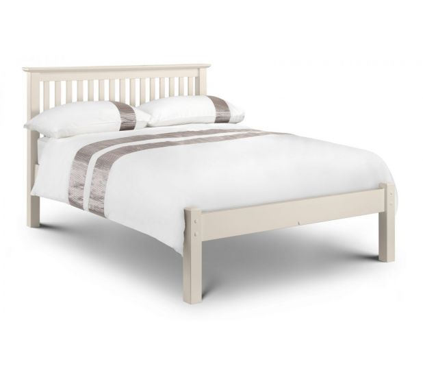 An imposing bed frame made from solid pine and MDF in an immaculate stone white lacquered finish. Its timeless shaker style sits equally well alongside contemporary and traditional interiors. Substantial posts and capping combine with a solid pine slatted base to ensure an incredibly robust and durable bed frame.