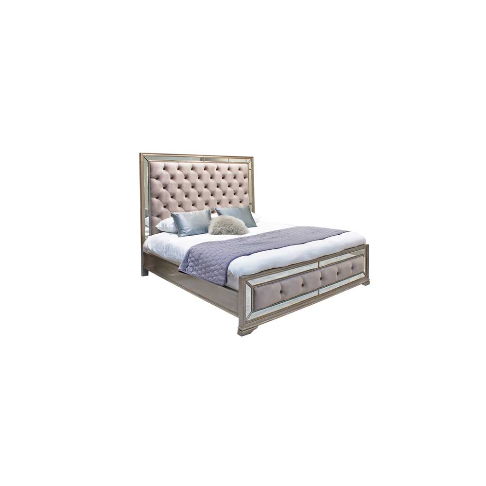 The Jessie exudes style and luxury. Hand crafted from eucalyptus, it features mirrored facing panels and deep buttoned head and foot board - this bedroom collection will make you feel like royalty.