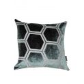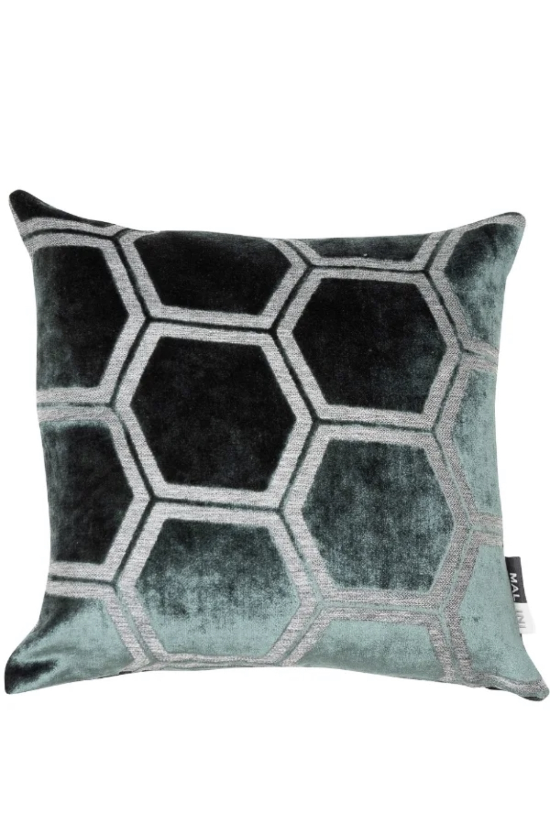 - Textured cut velvet cushion with a geometric hexagonal pattern
