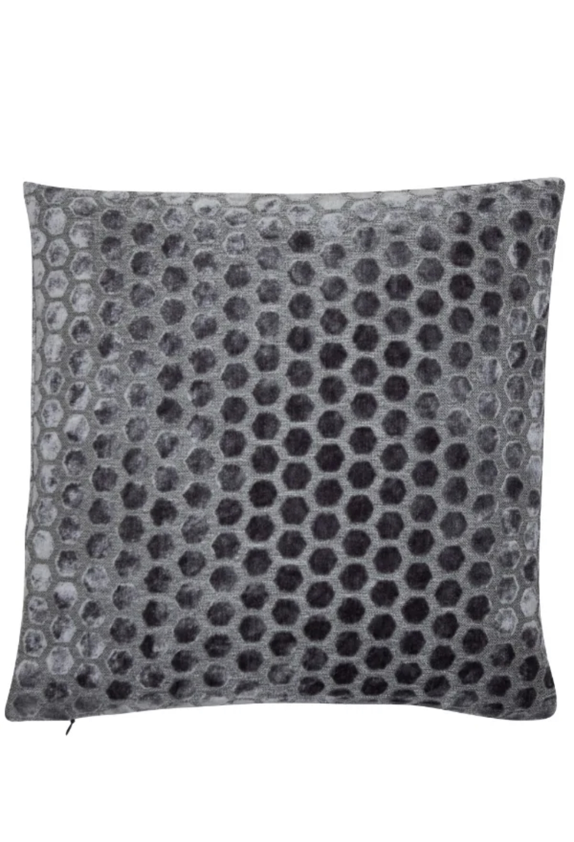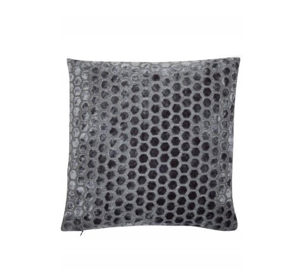 - Textured cut velvet cushion with a geometric hexagonal pattern