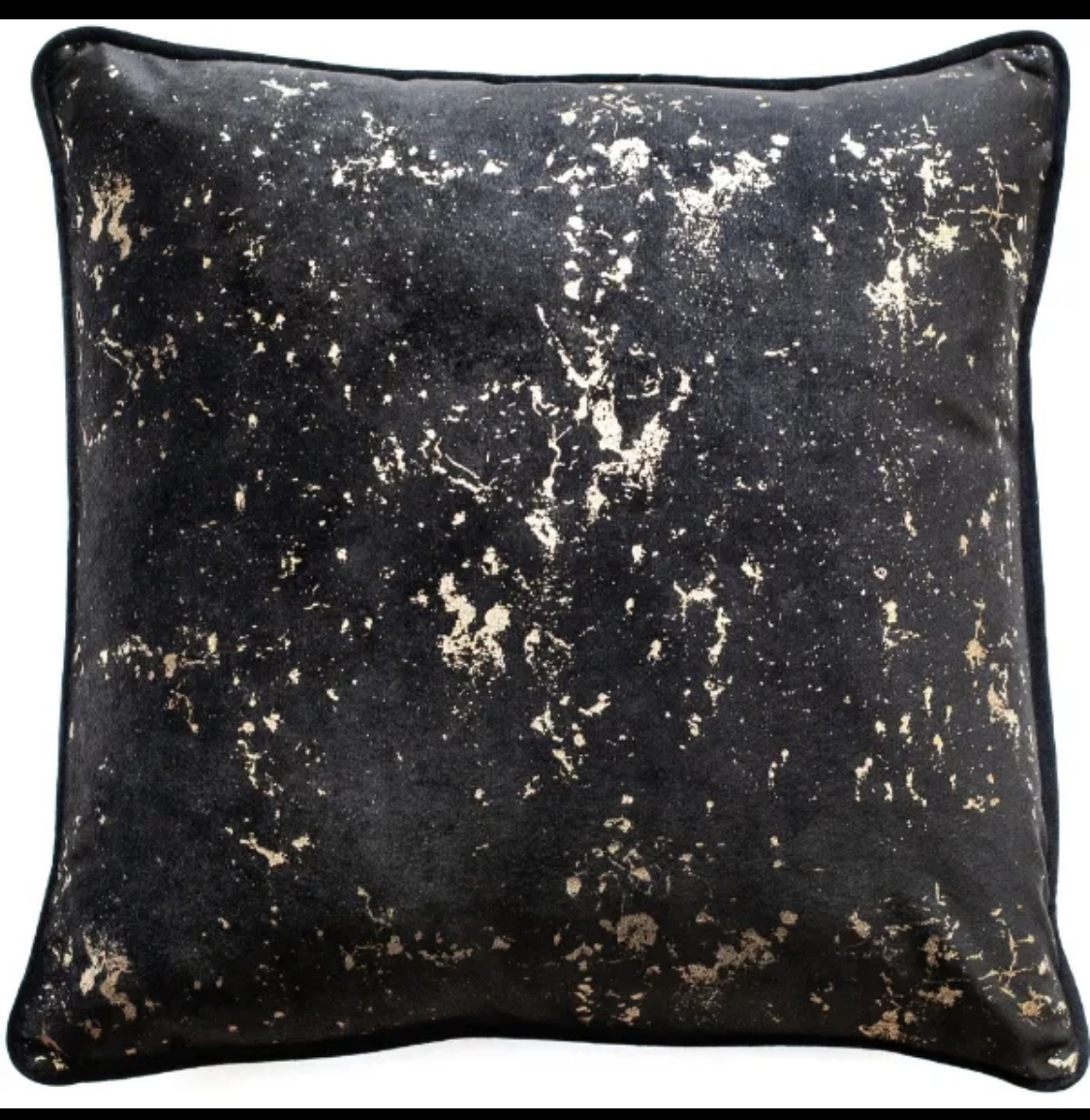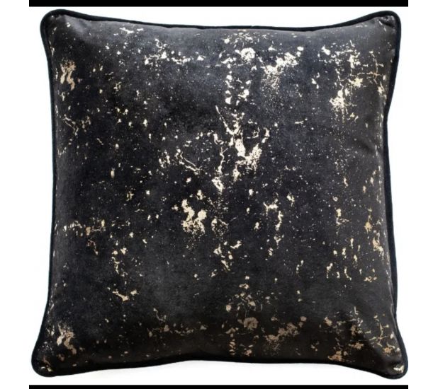 This velvet cushion features an on trend foil print that is highlighted with hints of gold. Cushion pad included.