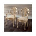 The Dining Arm Chair features an ivory lacquered french style wooden legs and upholstered padded seat and back. The chair is upholstered in soft cream fabric.