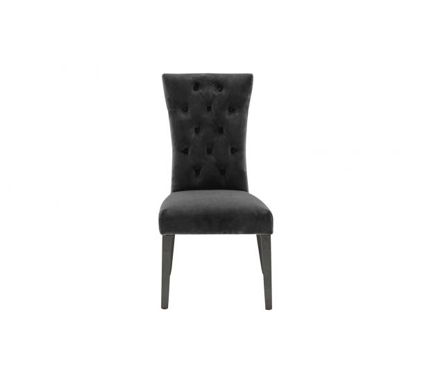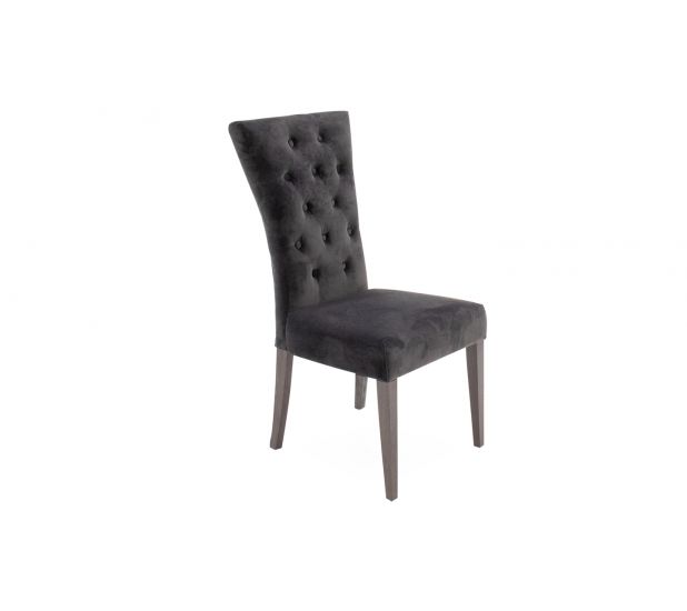 Featuring comfortably padded velvet seats and a high back with button details, it gives your dining room an elegant and sophisticated look. The wooden legs complete the look.