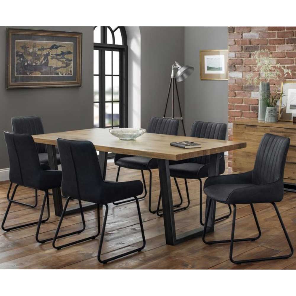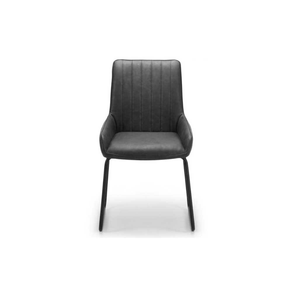 This Retro Sorlo Dining Chair is finished in an antique black faux leather with a striking black metal frame, sure to compliment any contemporary décor. It creates an industrial, retro feel within any contemporary decor.