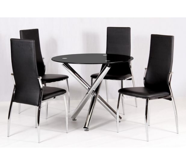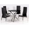 Carlos is our stylish modern and very popular dining table. It features a round glass top and chrome legs in beautiful criss-cross style. The table is ideal for use in kitchens or living room with shared dining space.