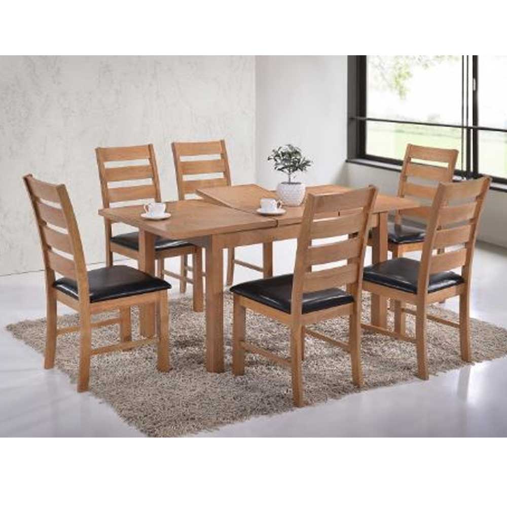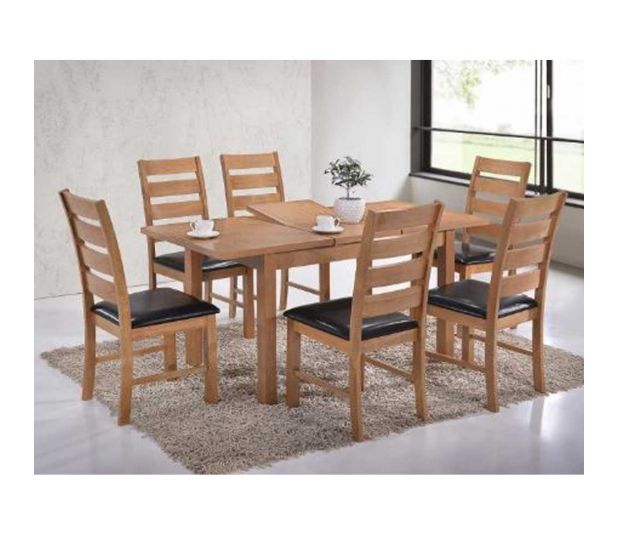 This beautiful dining table is solid wood and will a traditional vibe to any home. This stunning wooden dining table comes with a 40cm extension, perfect for you to cater for unexpected guests. Available in two sizes.