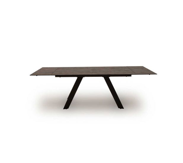 A tempered, glazed glass top offers a a very durable finish and urban look. And the heavy set metal spider leg frame finished in dark grey powder coated paint has lovely clean lines.