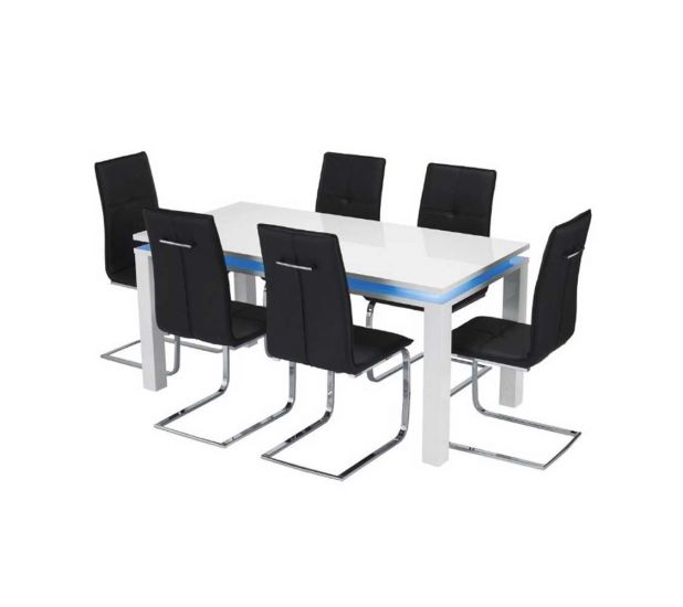 The Dining Table from this collection features clean lined design in a high-gloss white finish with subtle blue LED under-lighting built into the table apron.