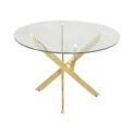 - A contemporary glass and gold finish dining table