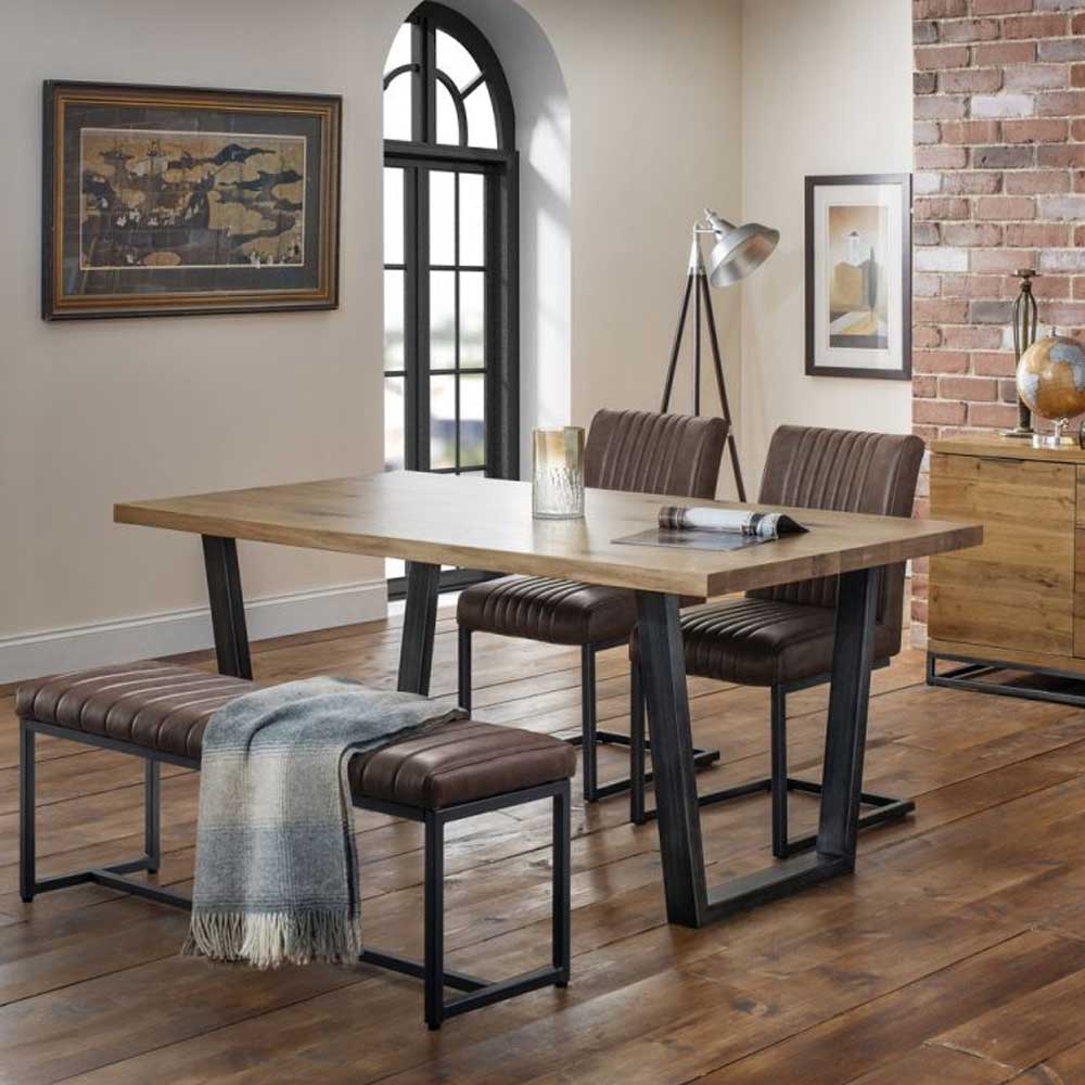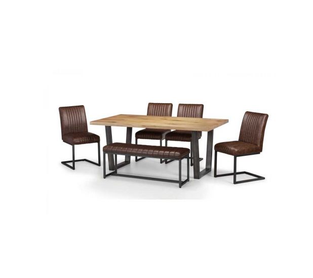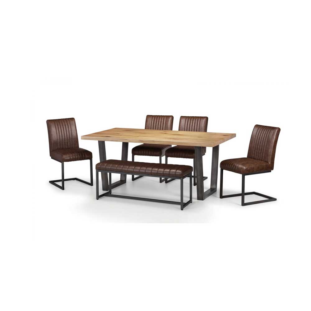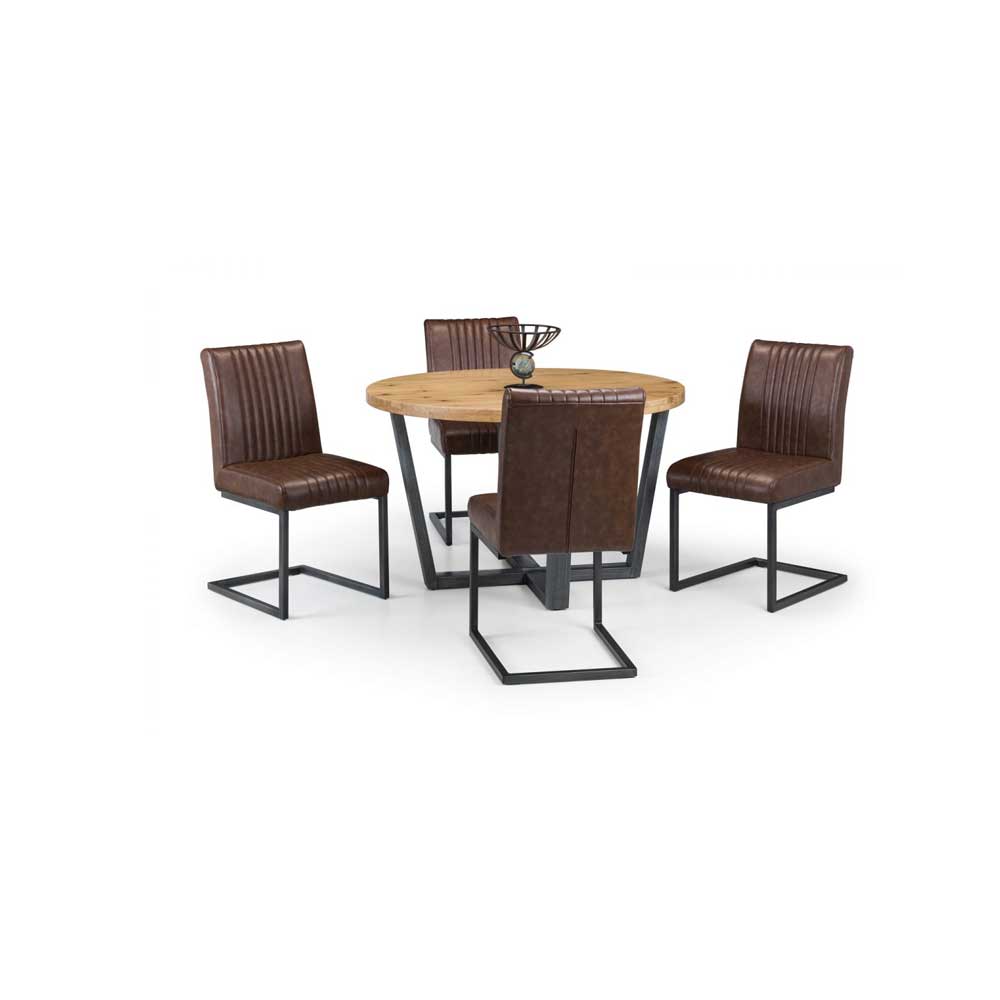 The Brook Dining Chair has an industrial, retro design in a vintage brown faux leather finish with a cantilever style gunmetal leg frame. Offering maximum comfort and style, this padded chair beautifully accompanies the Brook Dining Table.