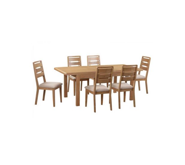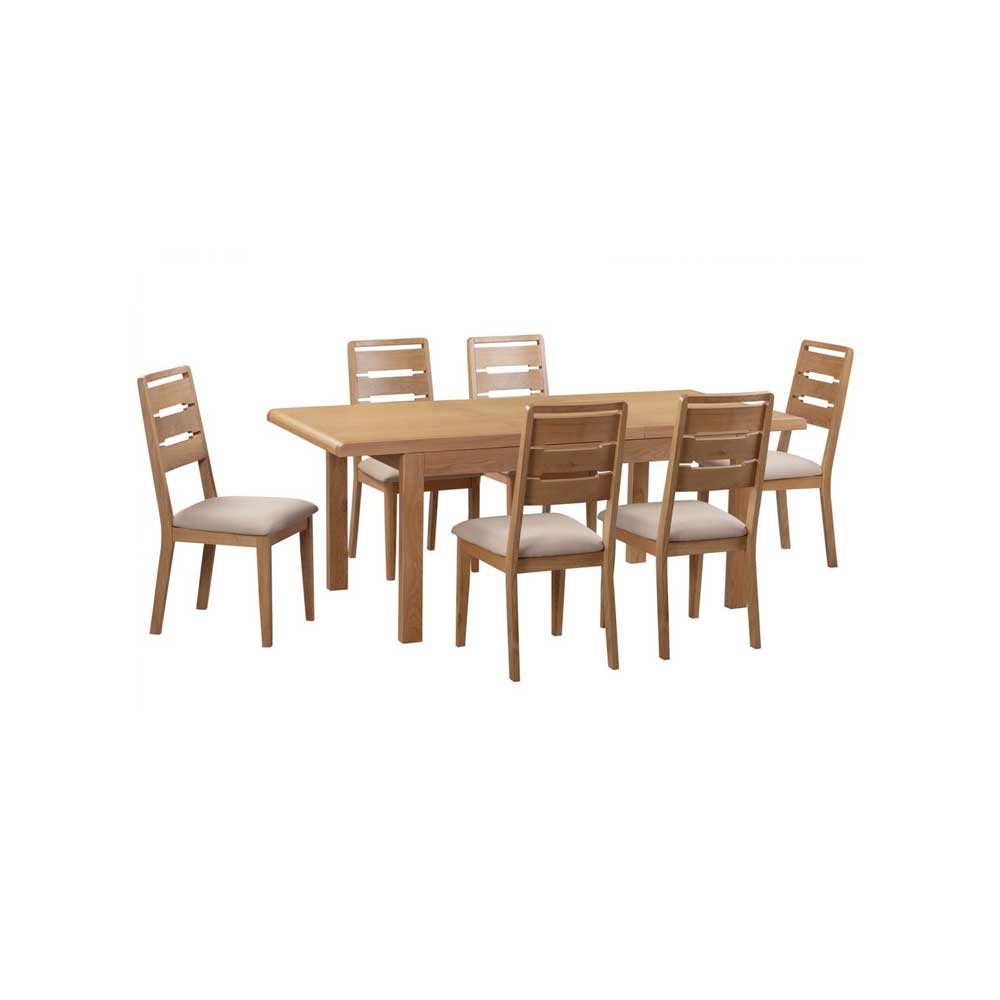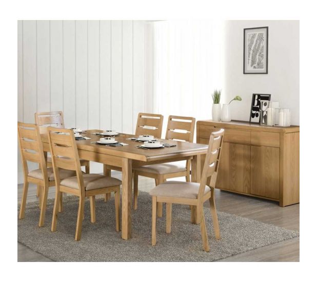 Crafted from solid oak and oak veneers, the Retro Oak combines clean lines with a gentle curved ediging, adding a modern, retro feel to any dining area. Extending to 180cm, this dining table is perfect for having dinner guests. Featuring a butterfly extension system, so there is no need to store a separate leaf. Accompanied by 6 Curve Dining Chairs, featuring a cut-out back to mimic the recessed handles the range has, this dining chair has padded linen seat, allowing you and your guests to reach maximum comfort