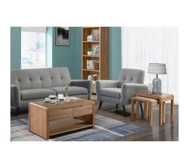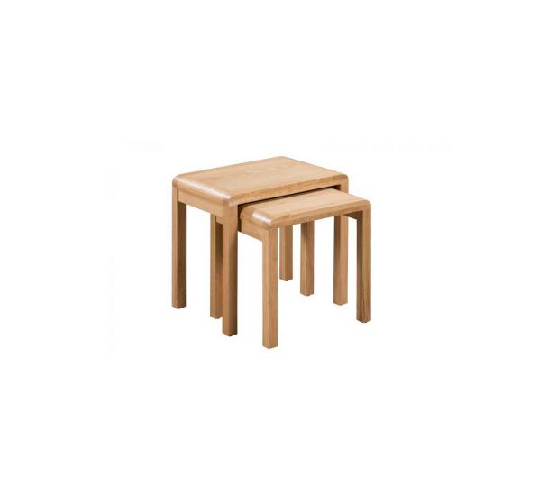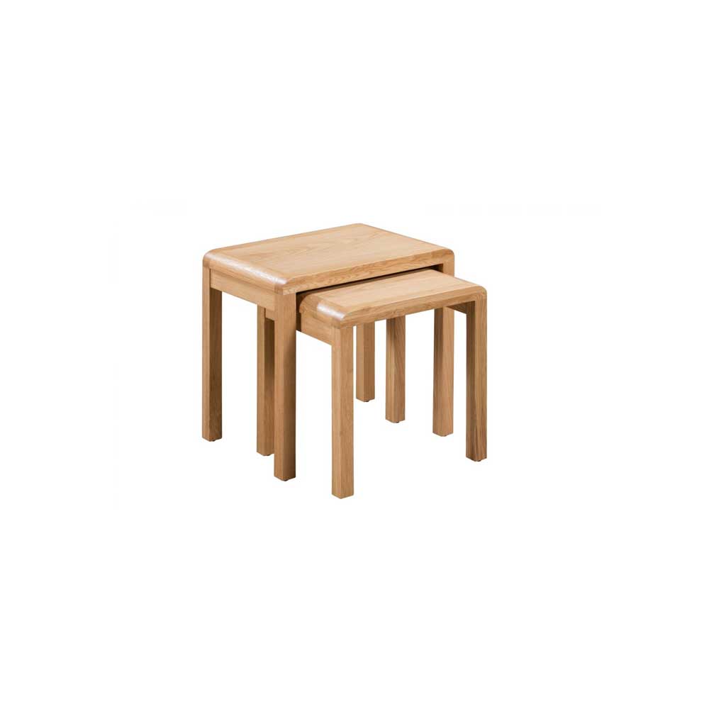 Crafted from solid oak and oak veneers, the curve combines clean lines with a gentle curved ediging, adding a modern, retro feel to any dining area. The Retro Oak Nest of Tables offers great space saving versatility with two tables for additional stylish storage.