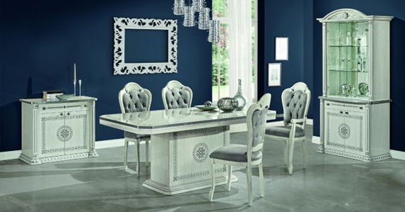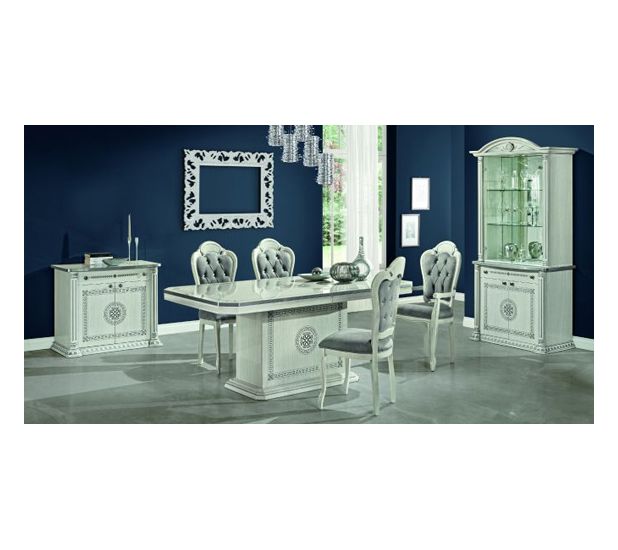 A timeless classic and luxurious collection manufactured in Italy by H2O. Aurora features a high-quality, polyester bright 100 gloss finish in a white-silver shade, the baroque style, and classic lines combine to create an environment that evokes the splendor of the 1600 palaces. Silver details on white high gloss panels and arabesque decorations with Art-Deco handles make this room an obvious choice for those who love a classic timeless atmosphere.
