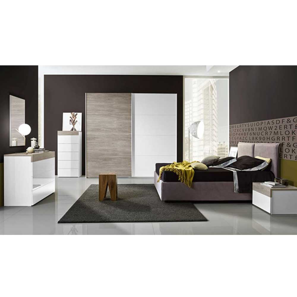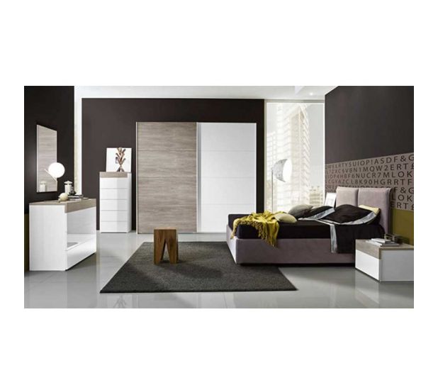 Modern looking, stylish Gess Bedroom Set is that will add a great touch to your bedroom. This Bedroom Set including 2 door wardrobe, internal drawers, wardrobe shelf, set partition +2 shelves, bed 160 with storage, chest of drawers, 2 night tables and mirror. Made from a strong combination of glossy white lacquered and plastered oak finish is sure to go along with modern and classic decor. Gess Bedroom Set offers an amazing amount of storage space for your clothes, and for other items, and class which is sure to enhance the look of any bedroom.