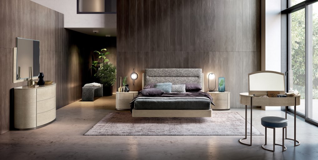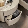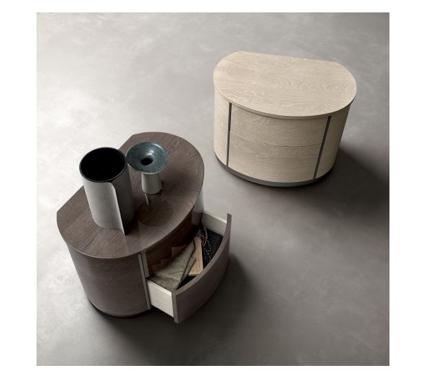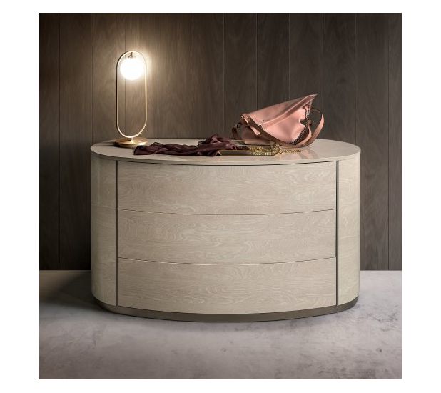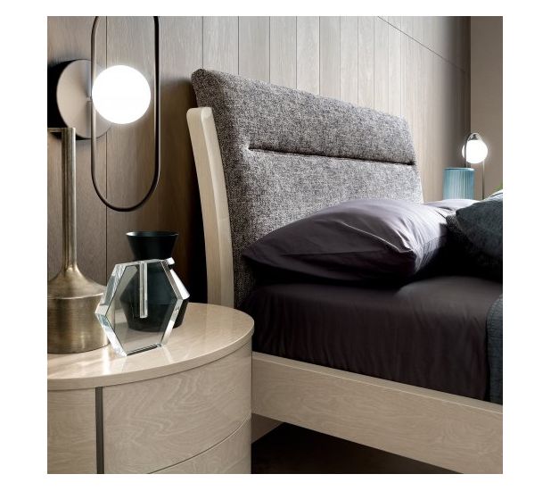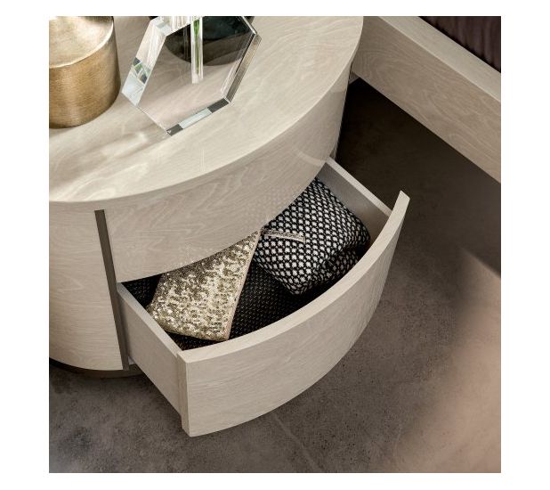 A unique and luxurious collection manufactured in Italy by Camel group. Mayfair bedroom with its contemporary shape and high gloss finish will make a statement in your room. The round night collection meets the needs of contemporary luxury homes. Soft, rounded lines are achieved utilizing sophisticated technologies eliminating corners and geometric sharp lines. Ivory and silver birch gloss finishes imbue a warm atmosphere to the bedroom.