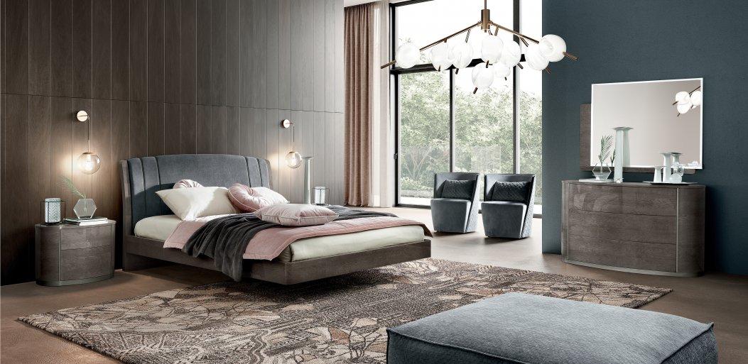 A unique and luxurious collection manufactured in Italy by Camel group. Mayfair bedroom with its contemporary shape and high gloss finish will make a statement in your room. The round night collection meets the needs of contemporary luxury homes. Soft, rounded lines are achieved utilizing sophisticated technologies eliminating corners and geometric sharp lines. Ivory and silver birch gloss finishes imbue a warm atmosphere to the bedroom.