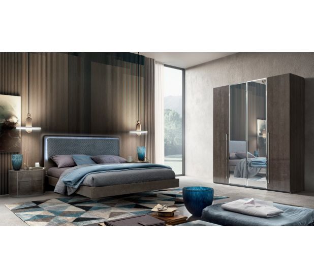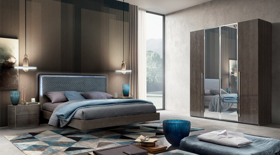 The bedroom package includes bed, 2 bedsides, 3 Drawers chest and 4 Doors mirror wardrobe.