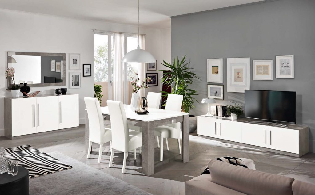 The Jazz dining table is a contemporary, elegant and luxurious piece of furniture, manufactured in Italy. With its subtle marble and white high gloss finish, it gives your room a luxurious modern look.