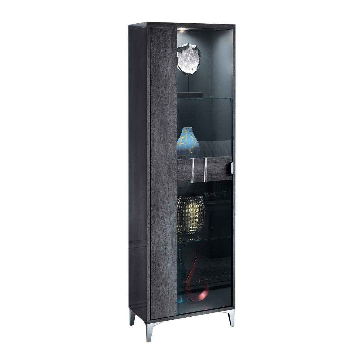Luna Modern 1 Door Display Cabinet - Grey