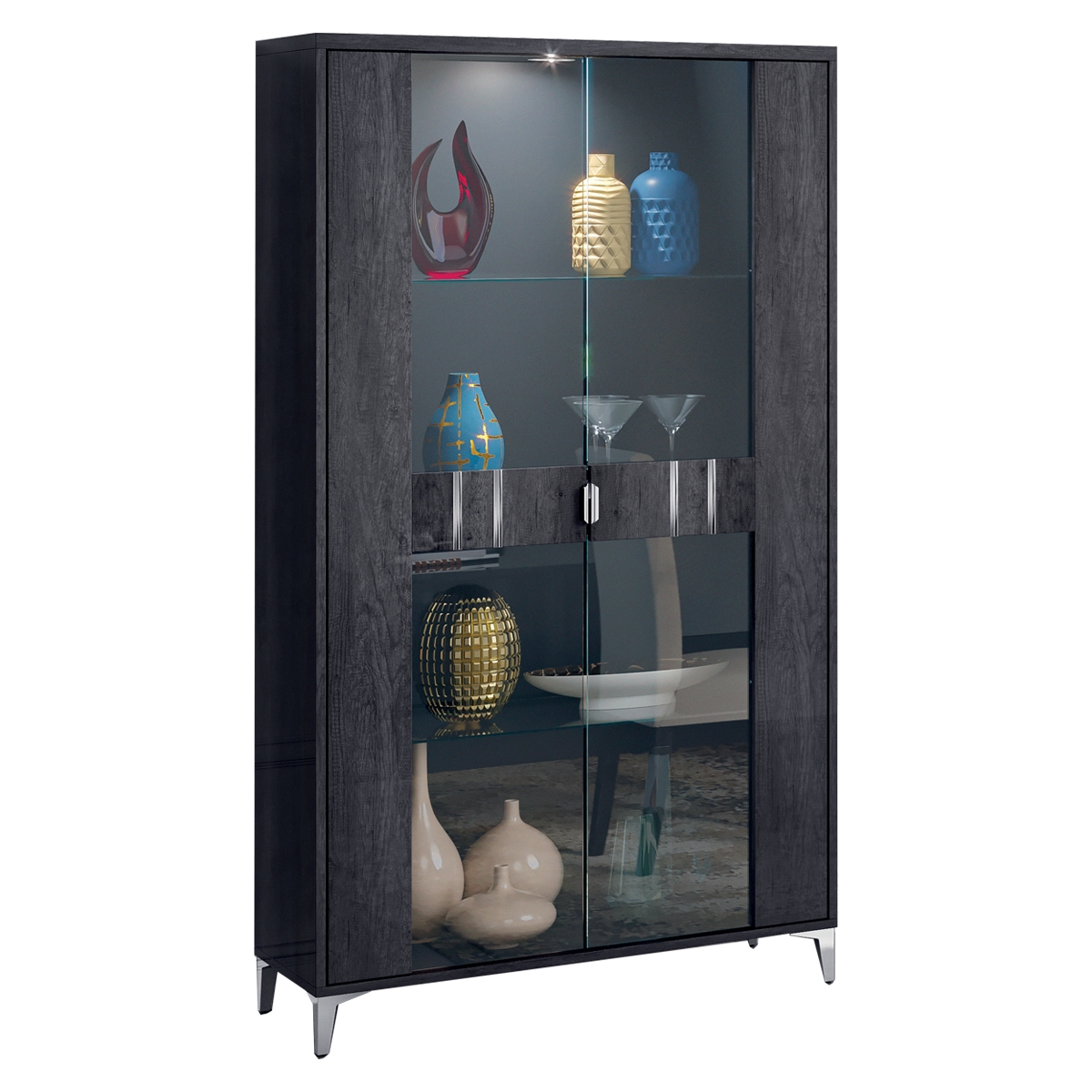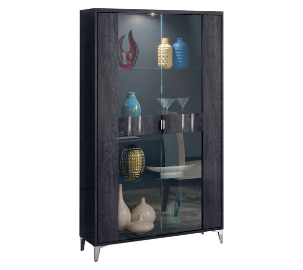 Luna Modern Grey Gloss 2 Door Display Cabinet