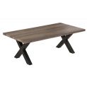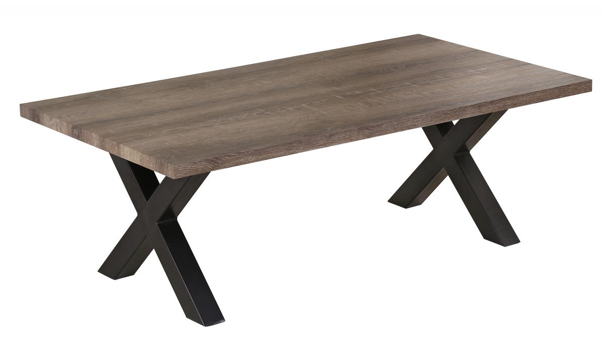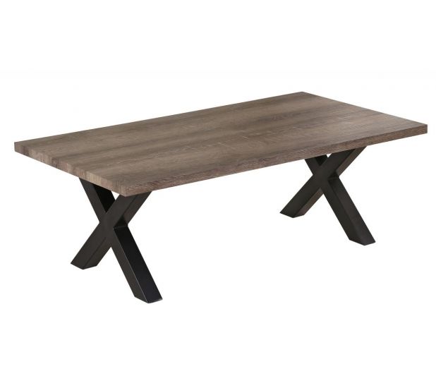 Unique wood finish light weight coffee table with black metal legs