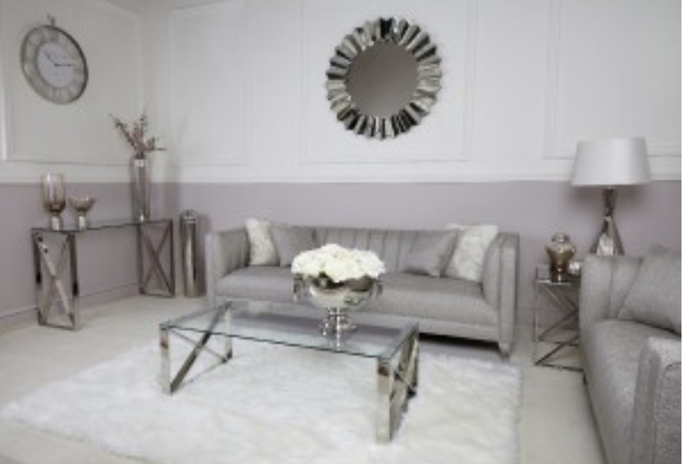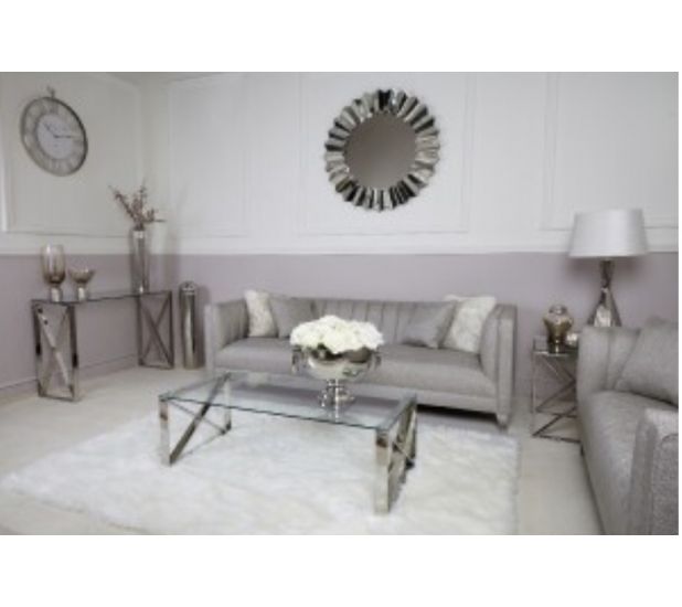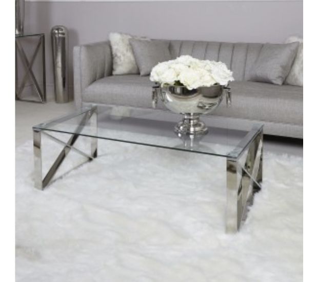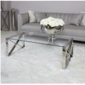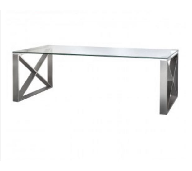 Zeno stainless steel coffee table, crafted in a steel frame, it showcases a silver hue with a rectangular design on the table ends finished with a tempered clear glass table top.