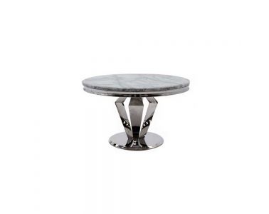 The Art is a contemporary living collection with billowed stainless steel legs and grey marble top.