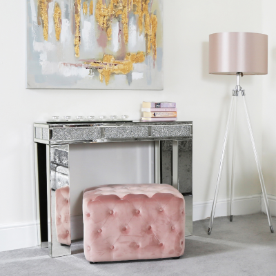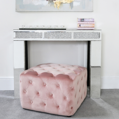 Milly collection is crafted in wood with mirror panels throughout, clear mirror edges and crystal handles. It will definitely bring a touch of glamour to your room.