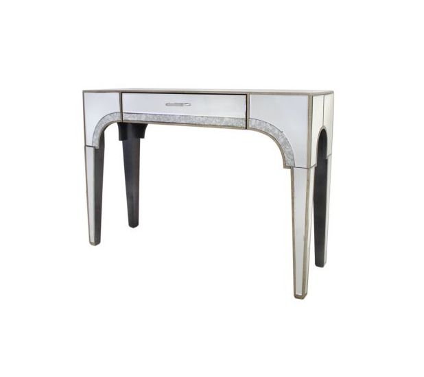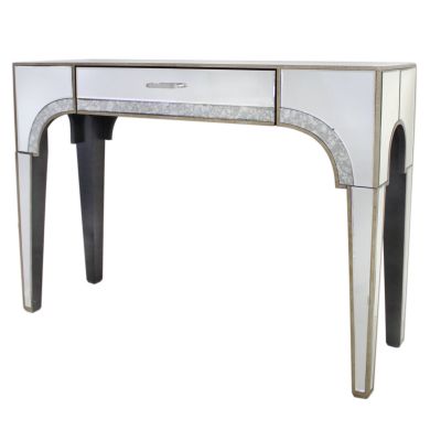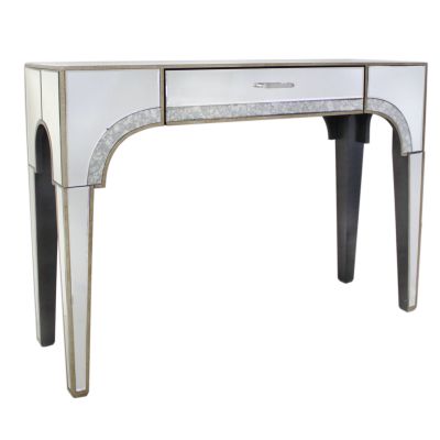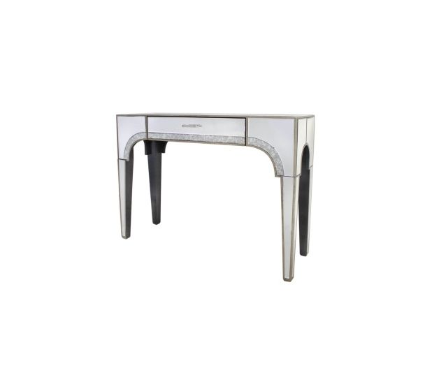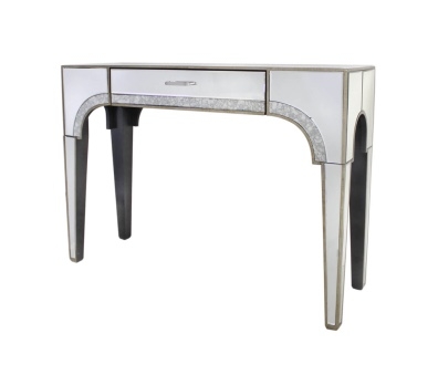 The console table features 1 mirror front drawer with crystal handles for easy grip.