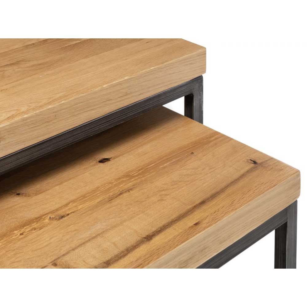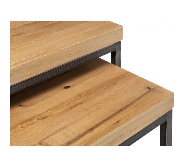 Made from solid oak, these Nesting Lamp Tables offer a rustic finish emphasising the stunning natural wood grain. The Brook Nesting Lamp Tables offer a vintage edge featuring industrial style metal legs. Stylish, functional and well proportioned, these lamp tables are a perfect space saving solution suitable for a wide range of modern decor. Part of the Brook Dining and Occasional Collection.