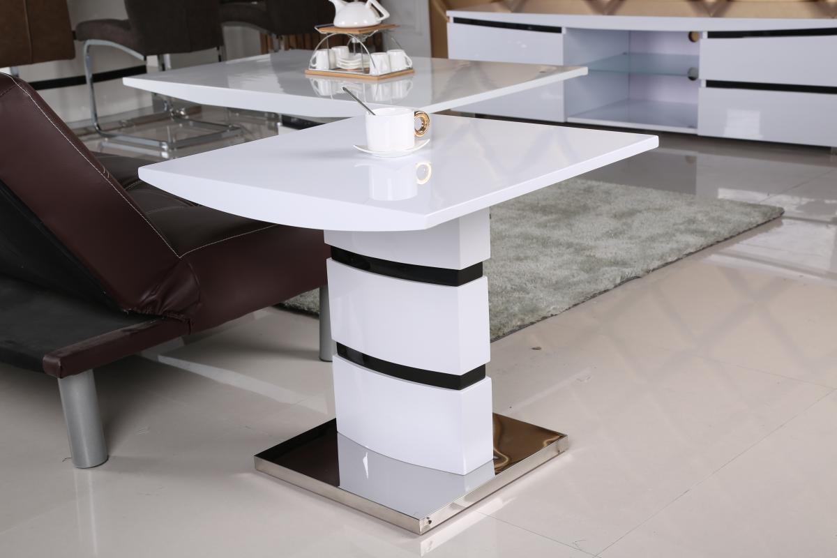 Lena is our popular design and offers a minimalistic and contemporary look. The lamp table features a white high gloss tabletop with stainless steel base. The pedestal has black stripes to complete its modern look.