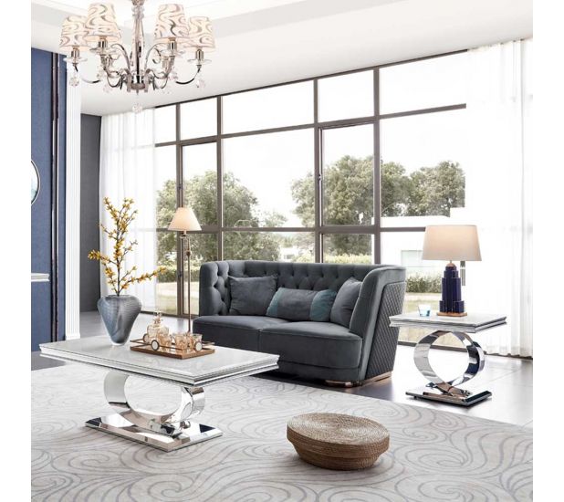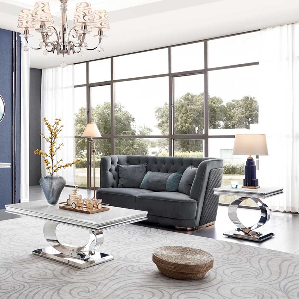 Time for something new! The Selena collection is opulent and inspiring, it’s bone white marble top and swooping stainless steel legs will go well with any decor.