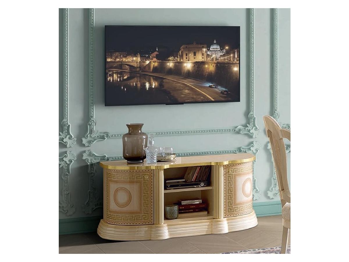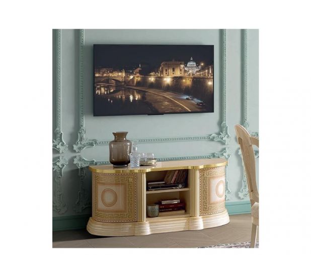 The buffet features high quality gloss finish in ivory and gold shades, the baroque style and classic lines combine to create an environment that evokes the splendor of the 1600 palaces. Gold details on ivory high gloss panels and arabesque decorations with Art-Deco handles make this room an obvious choice for those who love classic timeless atmosphere.
