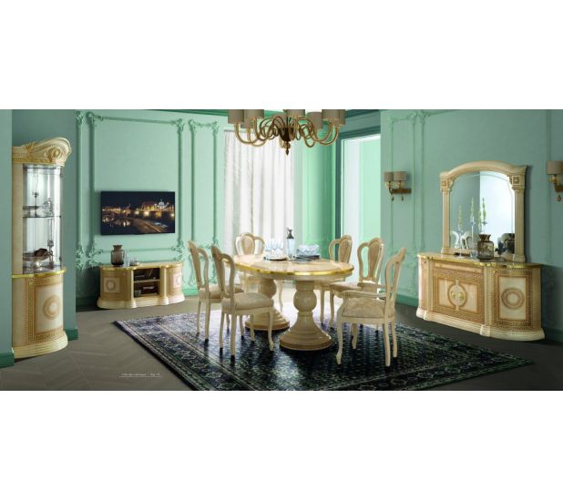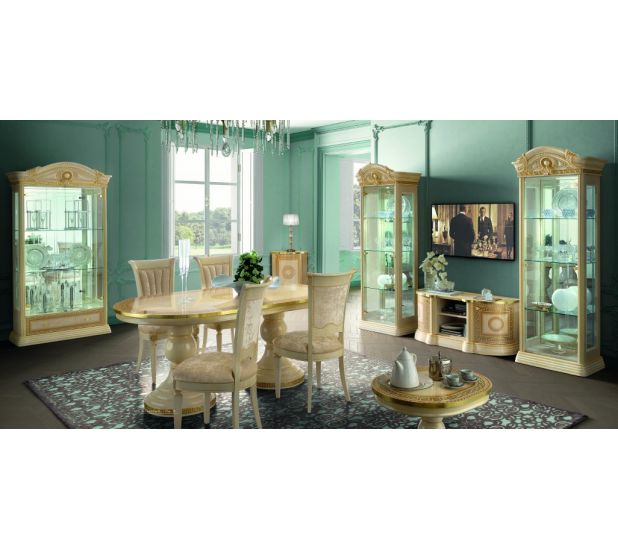 A timeless classic and luxurious collection manufactured in Italy by Camel group. Aida Living and Dining Collection in ivory-gold with soft chromatic details will make a statement in your room. The gold colour shades on flat surfaces and antique finishing on ornaments create a rich design with classical elements fused together in elegant atmospheres.