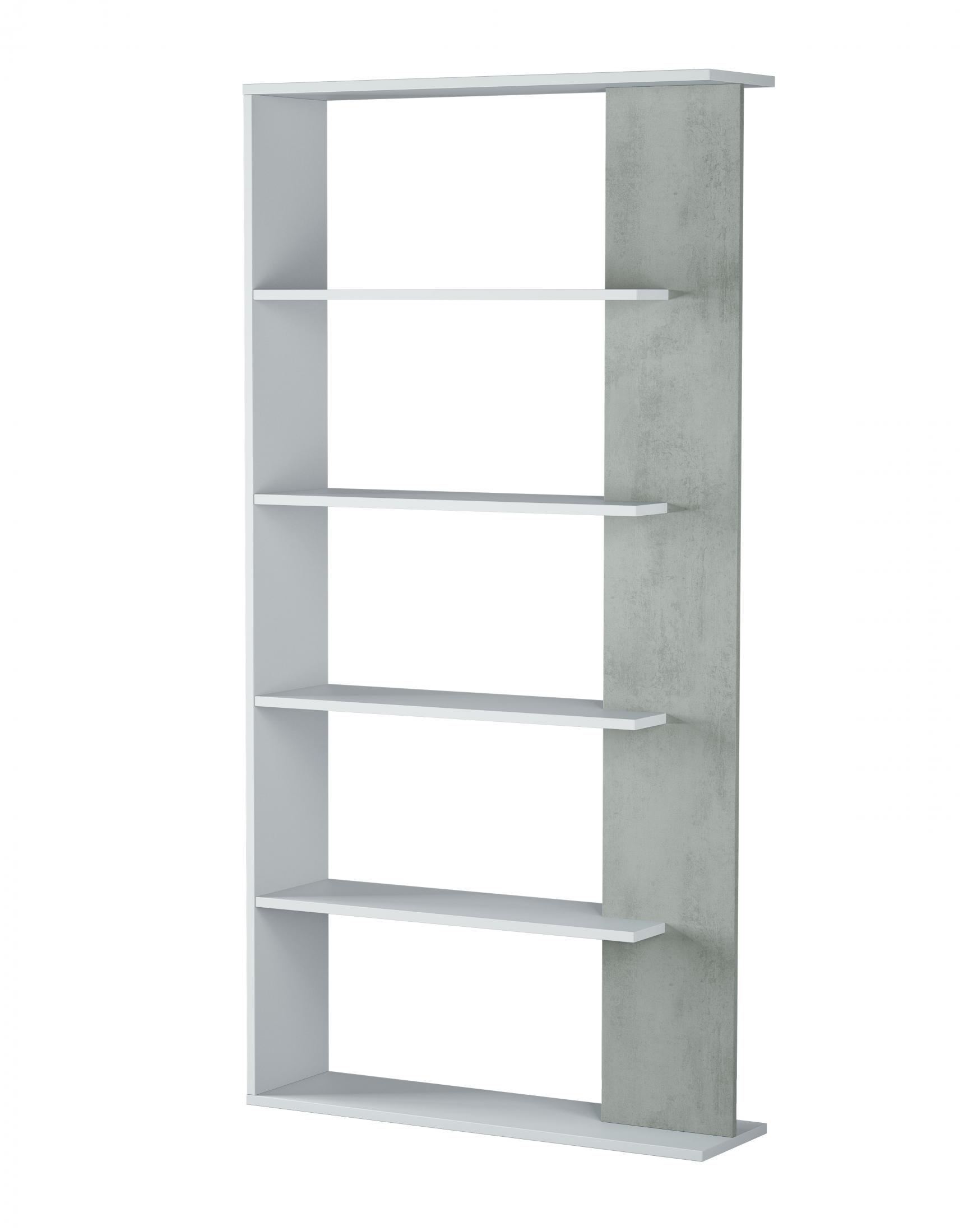 Epon is sleek modern display unit with white high gloss and concrete finish. Perfect in a living room or home office as a book shelf. The unit features 5 shelves. Matching desk is also available.
