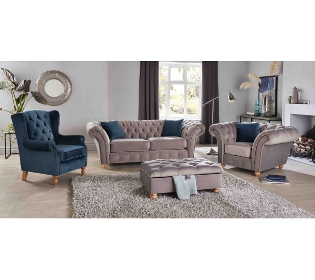 The foot stool features chesterfield pattern in soft fabrics. The seating has foam and pocket springs.The chesterfield design will be perfect for both modern and traditional decor. It is available in both plush fabrics and Malta fabrics.