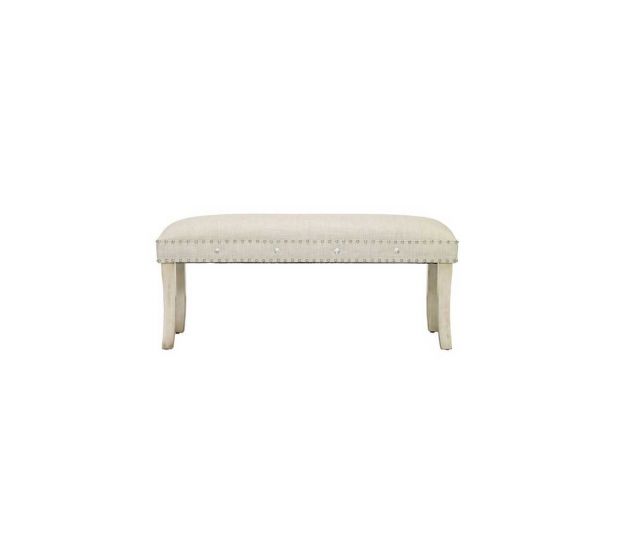 A linen style fabric bench offering an opulent feel to any room with its diamante and studded detailing. Whether you choose to arrange this bench in your dining area or bedroom, it is bound to add an eclectic, focal point to your interiors.