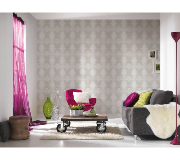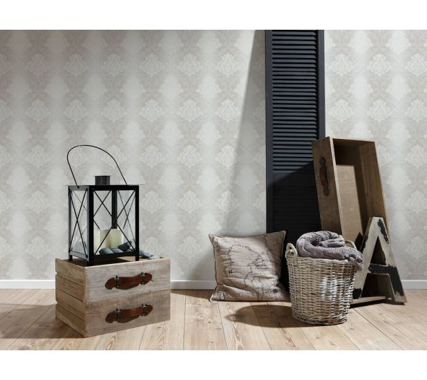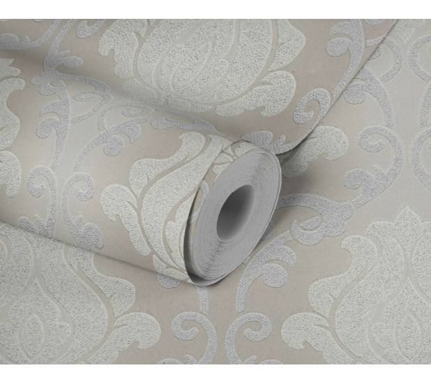 An elegant, bold and ever popular classic Baroque pattern from Adelaide collection by AS Creations print that will make a statement in your room. The vinyl wallpaper features cream and silver metallic colour ways and floral pattern on beige background to create a suttle but dramatic look in your home. Ideal for bedrooms, hallways or lounges.