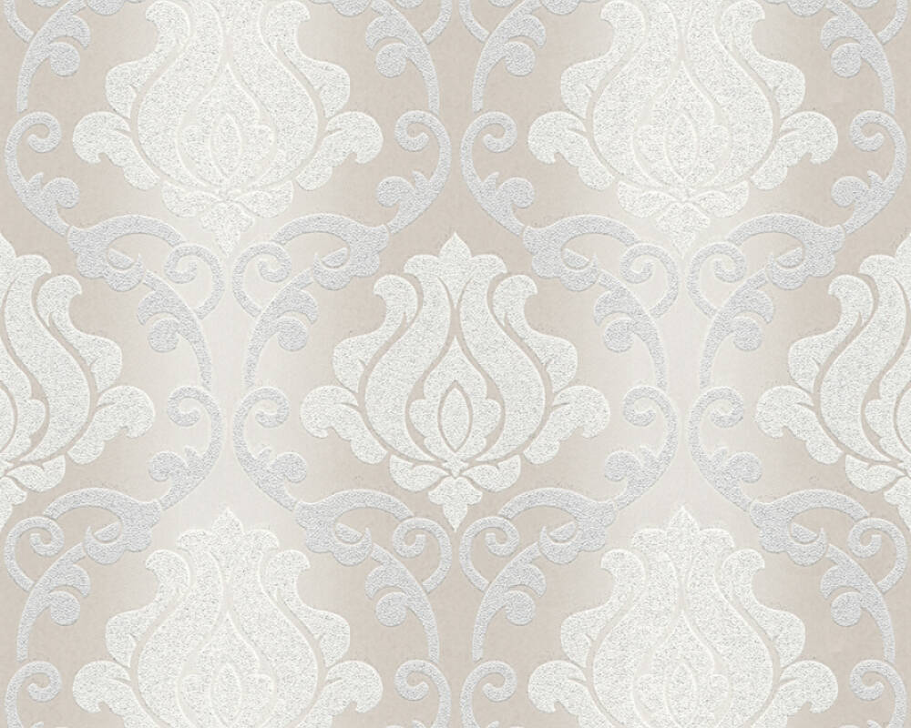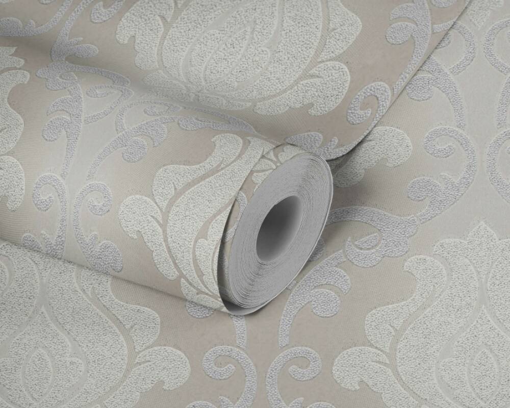 An elegant, bold and ever popular classic Baroque pattern from Adelaide collection by AS Creations print that will make a statement in your room. The vinyl wallpaper features cream and silver metallic colour ways and floral pattern on beige background to create a suttle but dramatic look in your home. Ideal for bedrooms, hallways or lounges.