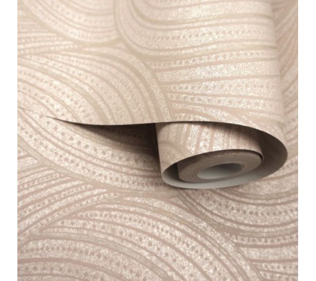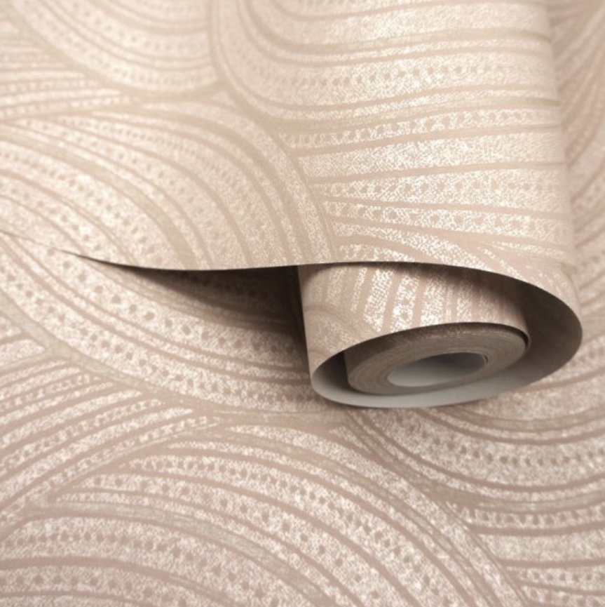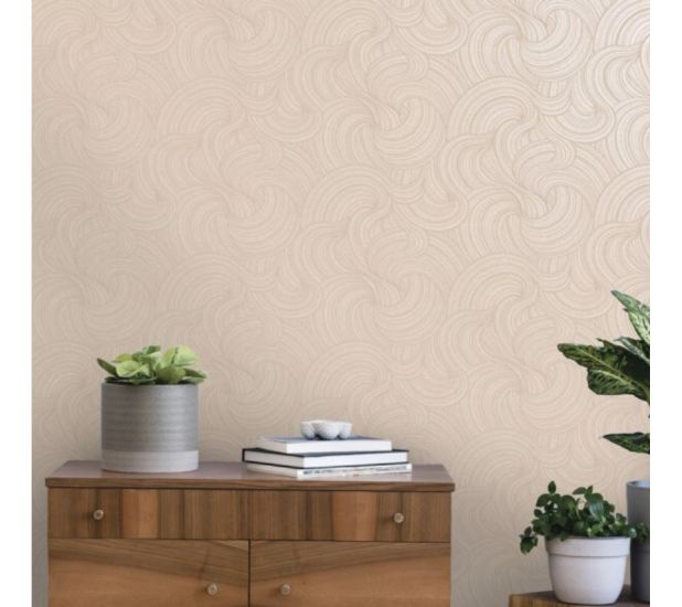 Aurora from Bakau collection by Holden Decor is a geometric acrylic wallcovering. It features raised acrylic swirls set within a textured print, all on top of a shimmering mica background. The swirl patterns are defined by sparkling satin metallic highlights. This non-woven product is paste-the-wall, PVC-free and uses water based ink.